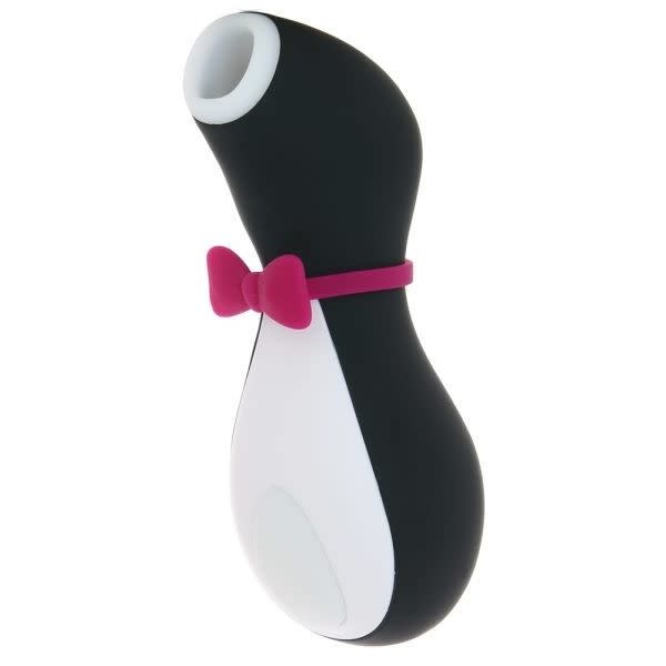 The Satisfyer Pro Penguin uses a unique technology that delivers pulsating air waves to the clitoris through a soft, oval silicone head. The silicone head creates a touch-free massage and vacuum effect. The Penguin's slender shape sits comfortably in your hand thanks to its ergonomic contours. The handy design and easy controls make it especially suitable for novices in sensual solo play. Thanks to its excellent insulation, the Satisfyer Pro Penguin is much quieter in use than comparable products on the market. The soft upper part, made from skin-friendly silicone, is 100% hygienic and protects the interior from water, lubricant, or other liquids. To make the Pro Penguin even more pleasurable, use with a water-based lubricant.